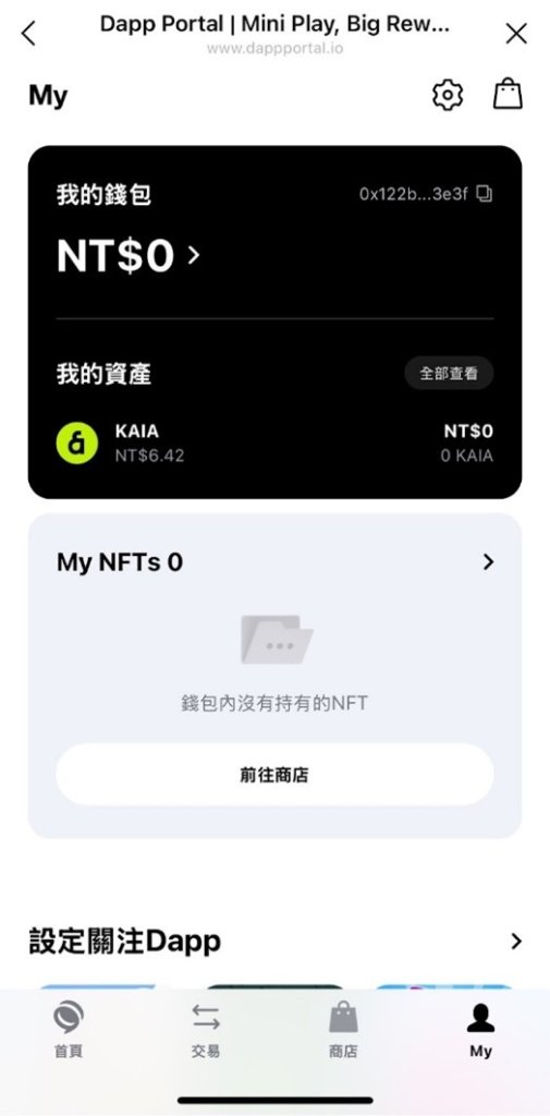 MY頁面非常簡單,就是查看你的所有資產,代幣以及NFT,都會呈現在這邊。