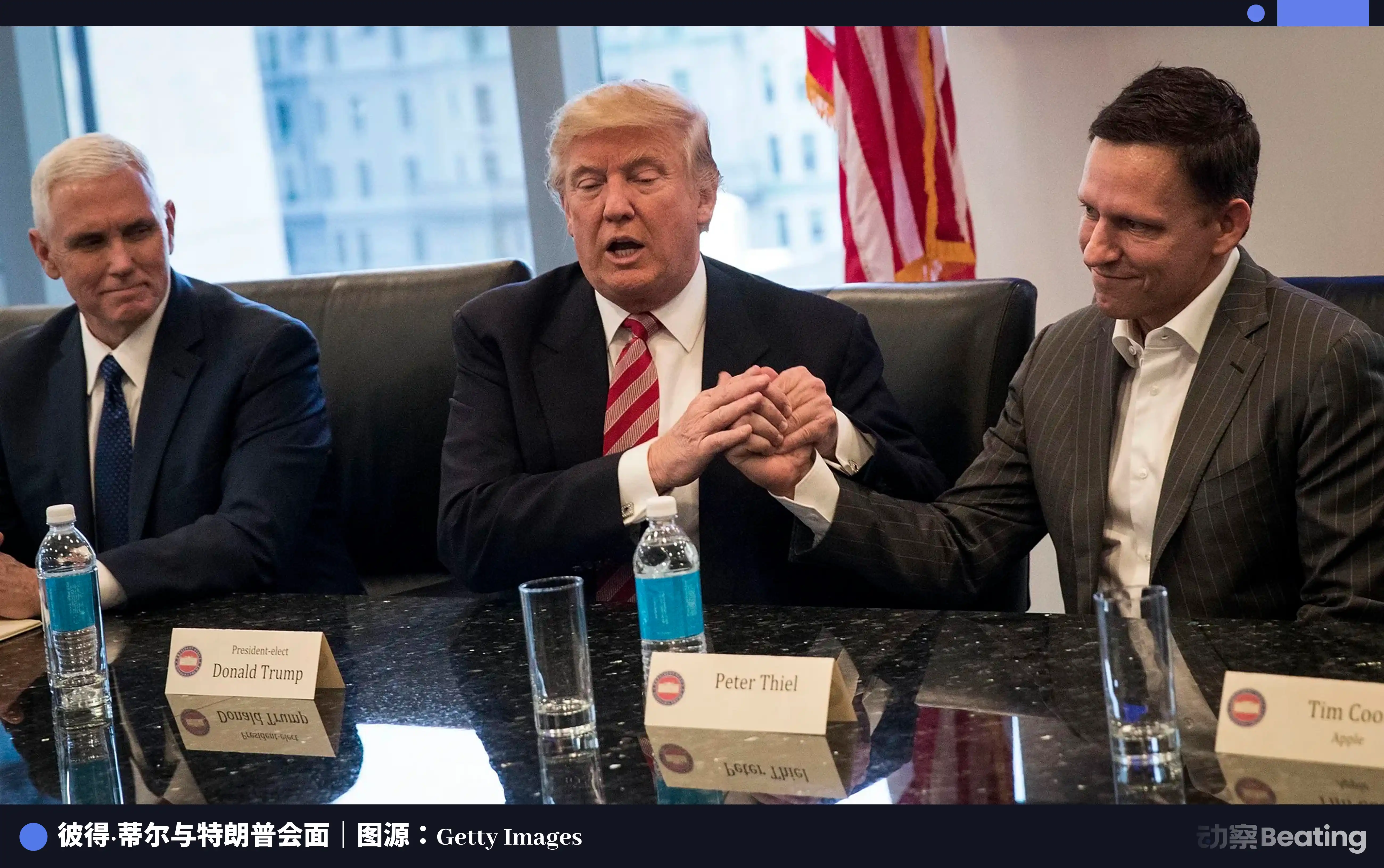 同年,彼得·蒂尔下了一步险棋,在共和党大会上公开力挺特朗普。这场豪赌让他直接杀入了权力过渡的核心圈。一夜之间,他从硅谷投资人,变身为连接科技界与白宫的关键桥梁。