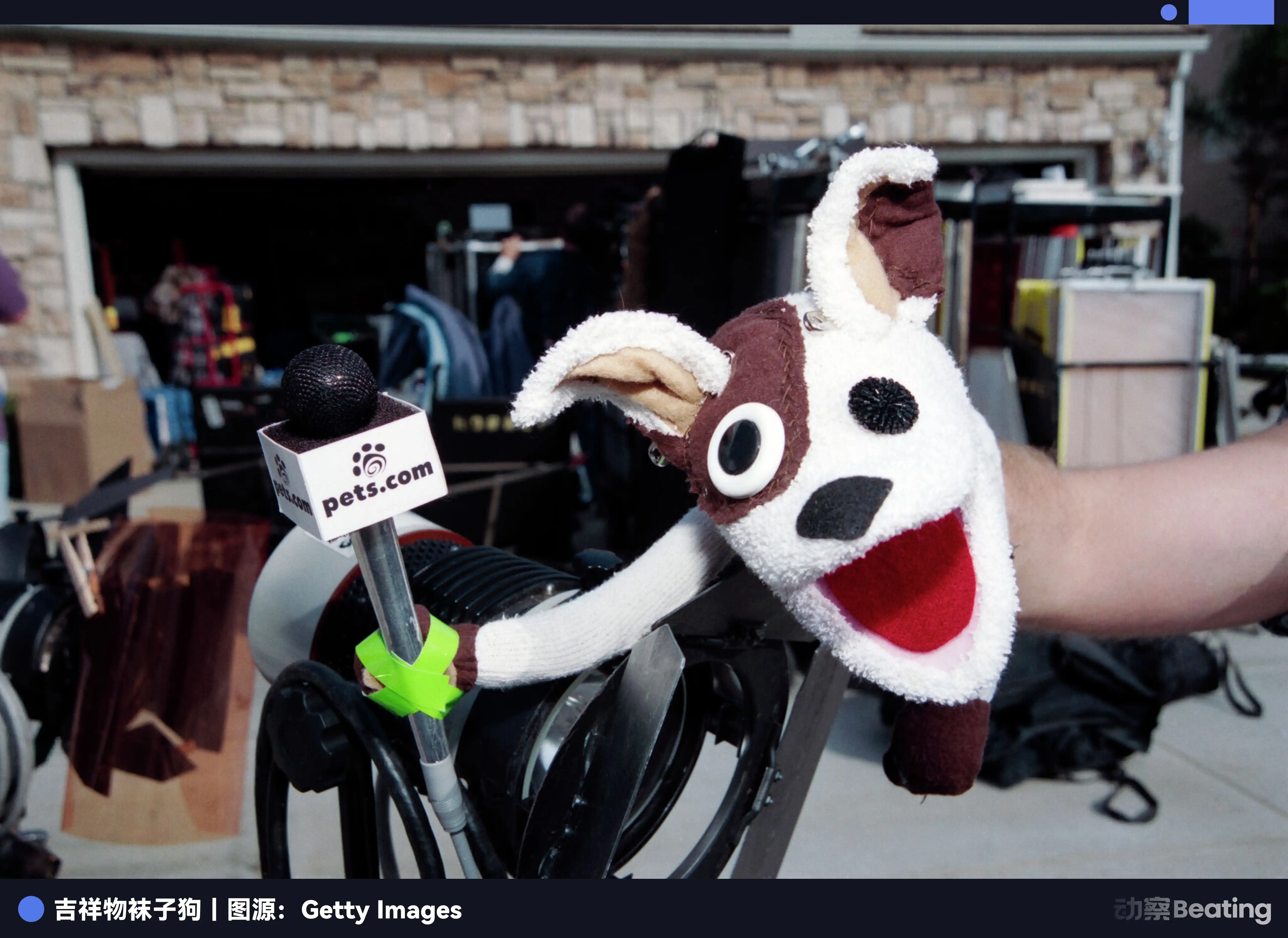 2000 年 2 月,Pets.com 成功 IPO,融资 8250 万美元,市值一度超过 3 亿美元。然而,仅仅 268 天后,这家公司就宣布破产,烧光了所有融资。那只曾经风光无限的袜子狗,最终成了互联网泡沫时代最荒诞的象征。