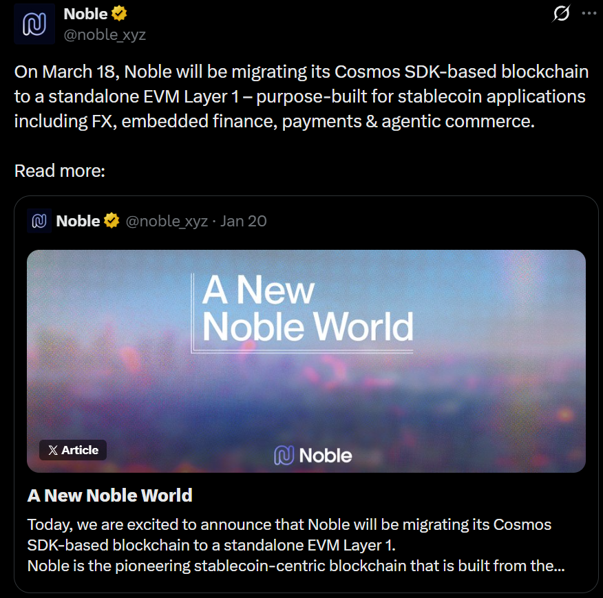 Noble 的转向是一个典型案例。作为 Cosmos 生态里最成功的稳定币基础设施之一,它曾承担原生 USDC 的发行与跨链分发,并通过 IBC 连接了大量链与稳定币结算场景。但当它宣布迁移到独立的 EVM L1,并将稳定币产品与网络价值捕获机制深度绑定时,信号已经足够清晰:稳定币、结算与应用分发的主战场仍在 EVM。稳定币市场份额高度集中在 EVM、开发者工具与钱包/dApp 生态更成熟。但这并不意味着“去 EVM”就等于“挤进某条通用链”就万事大吉。恰恰相反,越来越多团队在走向 EVM 的同时,开始重新定义一个问题:我们到底是在选择一条链,还是在选择一种增长方式?