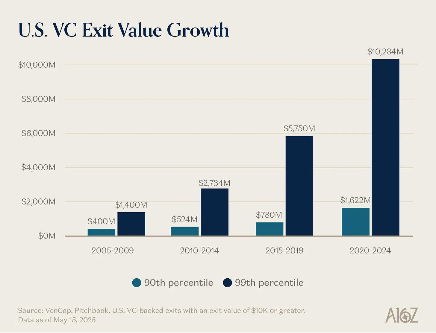 最后一个原因,也是最不明显的一个原因,是挑选变得稍微容易了一些。VC 市场变得更加高效。一方面,有更多的连续创业者在不断创造标志性的公司。如果马斯克、Sam Altman、Palmer Luckey 或一个天才连续创业者创办了一家公司,VC 们会迅速排队尝试投资。另一方面,公司达到疯狂规模的速度更快了(由于保持私有的时间更长,上涨空间也更大),因此相对于过去,产品与市场契合(PMF)的风险已经降低了。最后,由于现在有这么多伟大的机构,创始人联系投资者也容易得多,所以很难找到其他机构没有在追求的交易。挑选仍然是游戏的核心——以合适的价格选中正确的长青公司——但它已不再是迄今为止最重要的环节了。
