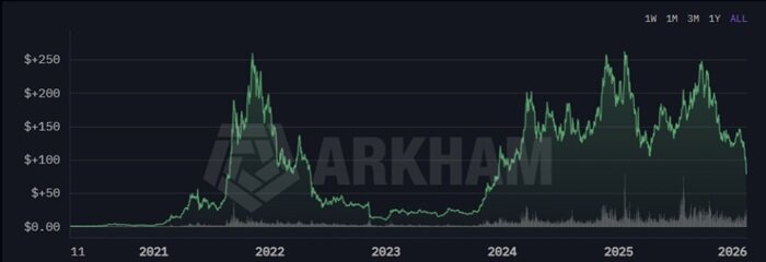 2026 年伊始,加密货币市场遭遇暴跌,Solana 价格也跌破 100 美元, Anatoly Yakovenko 的净资产估值基本上维持在 5 亿美元至 12 亿美元之间,具体数额取决于持有代币的流动性以及 Solana Labs 持有股权估值。
