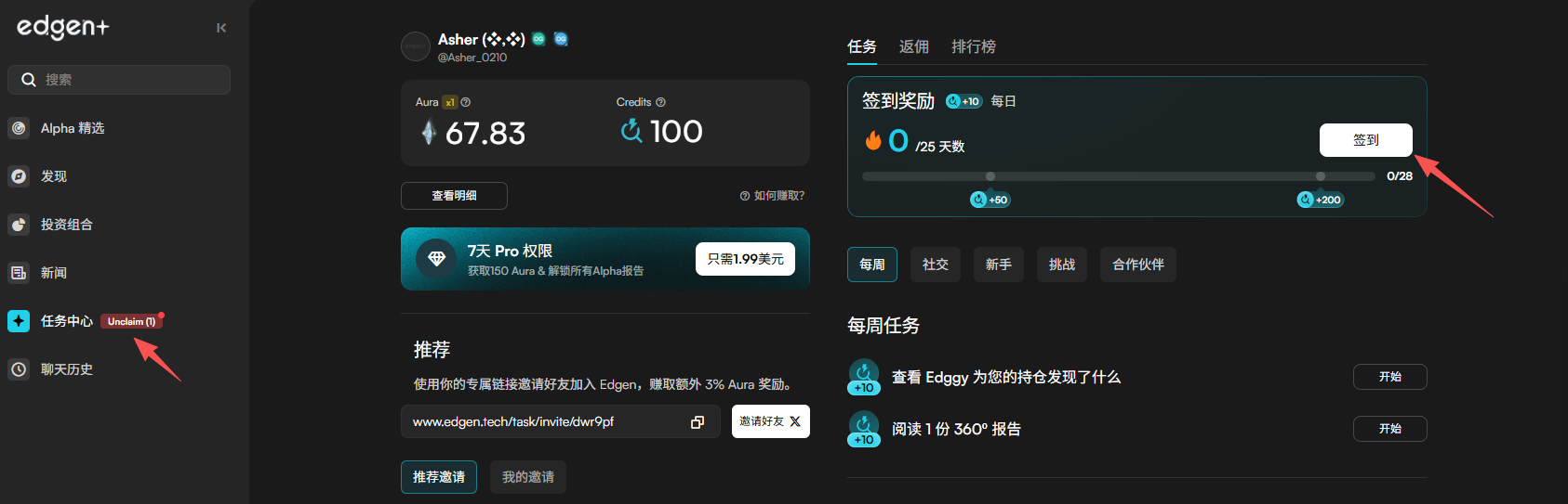STEP 3. 除每日签到任务外,还可以完成新手任务、每周任务、社交任务等。