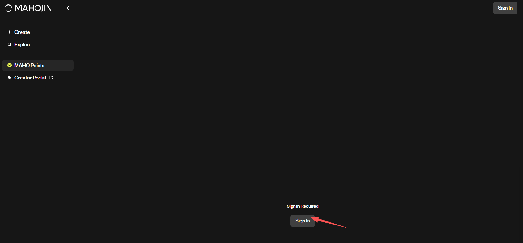 STEP 1. 进入官网(链接:https://app.mahojin.ai/maho-point),点击“Sign in”进行账号登录,并绑定 X 账号。