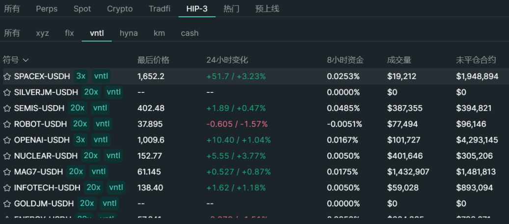 一种是以 Hyperliquid 为代表的永续合约模式,譬如基于 HIP-3 框架,开发者可以自定义部署 OpenAI、SpaceX 等 Pre-IPO 资产的永续合约产品。核心逻辑是将 Pre-IPO 与永续合约结合,不涉及真实的股权交割,本质上绕开股权本身,仅提供价格敞口,让用户押注 SpaceX、OpenAI 等公司的估值涨跌。