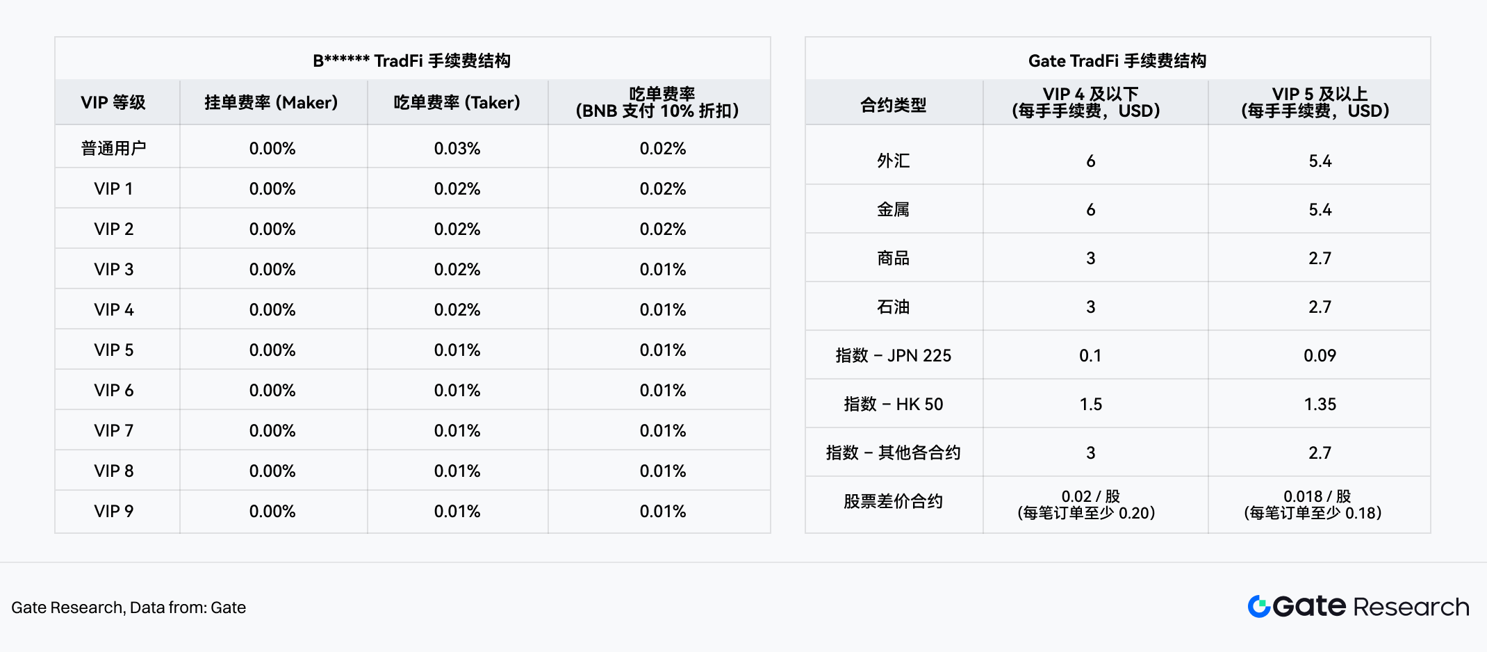 在 TradFi 相关产品中,Gate 与 B****** 在费率设计上采取了截然不同的定价模型,Gate 延续传统 CFD 市场常见的按手固定收费模式,而 B****** TradFi Perps 则沿用按名义成交额收取百分比手续费的永续合约体系。