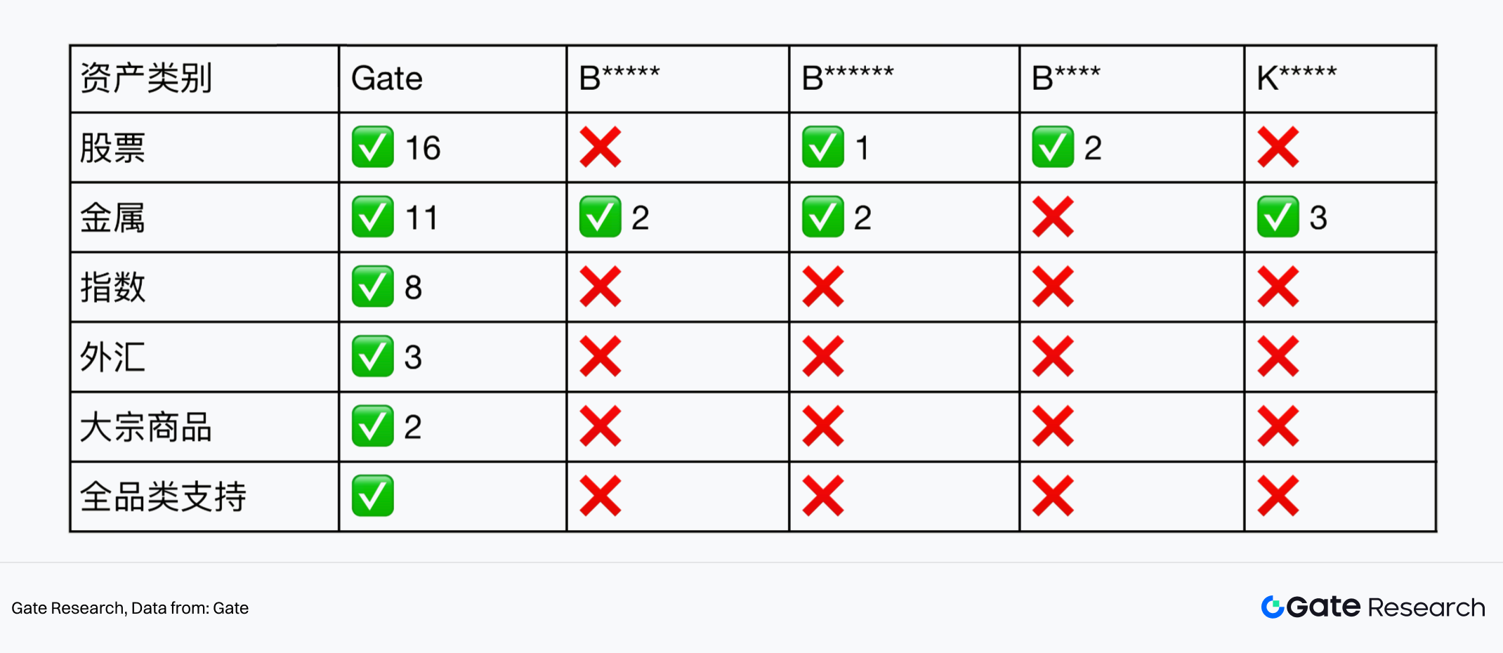 • 多数竞品的重点在独立的 TradFi CFD 模块,通过标的多和门槛低承接跨圈用户,而 Gate 的差异化优势偏向将传统资产纳入统一的订单簿永续框架,当作可复用的衍生品基础设施来建设,从而在订单簿永续层面与竞品拉开机制差距。