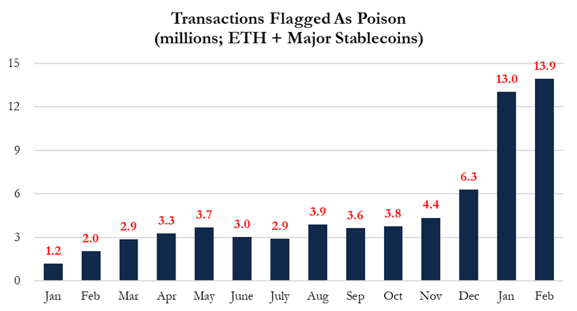 • 投毒行为解释了超过 50% 的以太坊交易增长;