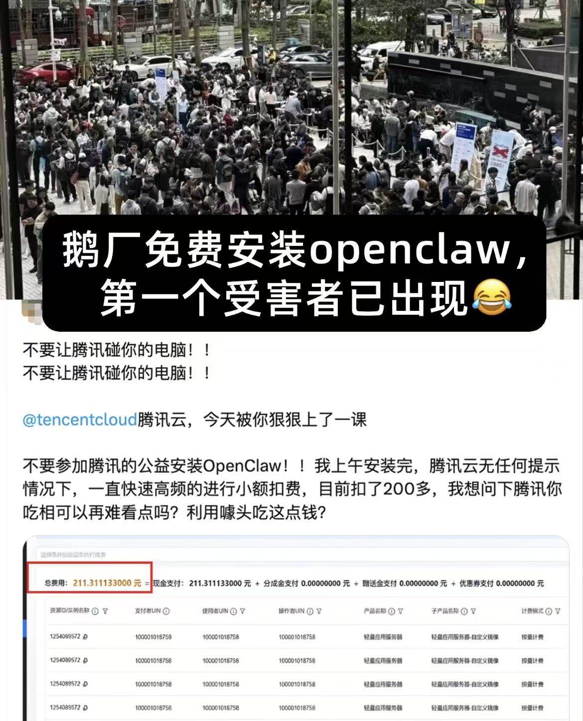 但在我们接触到的多数参与者中,仍有大量用户停留在安装阶段,不知如何真正玩转,而且,多数人使用 OpenClaw 仍然采用的是各类 AI 模型公司或平台提供的简易安装版本。更有甚者,好不容易线下排队后装好了腾讯云团队安装的 OpenClaw,却因为不熟悉操作而任由其自动运行,最终产生了一笔不大不小的 Token 消耗费用,最后反而怒喷腾讯云吃相难看。