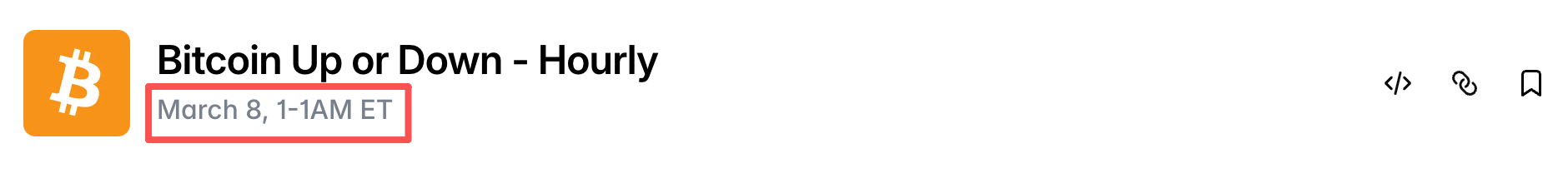 如 Polymarket 前端界面所示,或是因为 2:00 在昨日美东时间的计时中并不存在,本批事件当前所呈现的时间周期均为“March 8,1-1 AM ET”(即 3 月 8 日 1:00 – 1:00),但在正常计时状态下,此类事件本应呈现一个 1 个小时的时间周期(比如前一天的同类事件为“March 7,1-2 AM ET”,即 1:00 – 2:00),而若计入夏令时切换的影响,本批事件更合理的时间周期应为“March 8,1-3 AM ET”(即 1:00 – 3:00,实质仍为 1 个小时)。