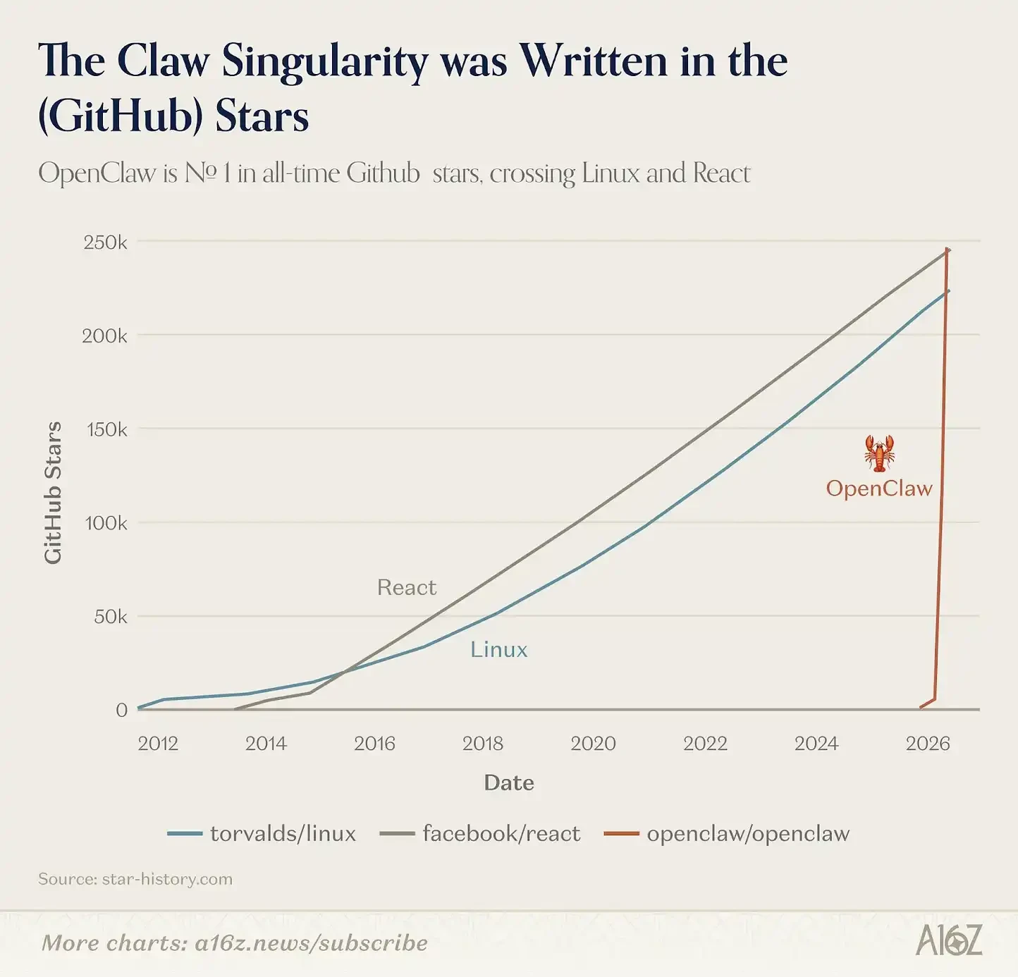 最近,横向型 Agent 也开始出现。2026 年 1 月,一个名为 OpenClaw 的开源项目在短短几周内,从一名开发者的个人副项目迅速增长到 6.8 万个 GitHub Star,并获得主流媒体关注。该项目由奥地利开发者 Peter Steinberger 创建,是一个本地运行的 AI Agent,可以连接用户的消息应用,并代表用户执行多步骤任务。
