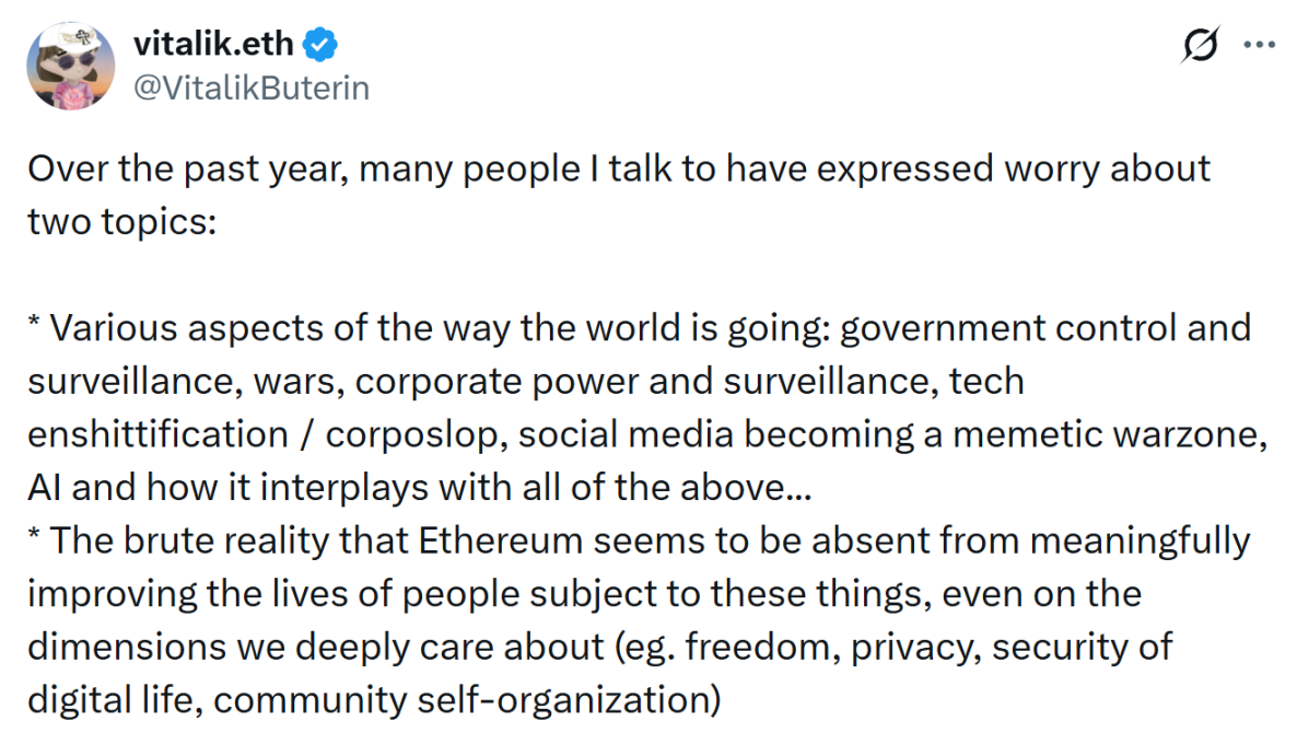 Vitalik 这次的出发点,带着一种少见的坦率。