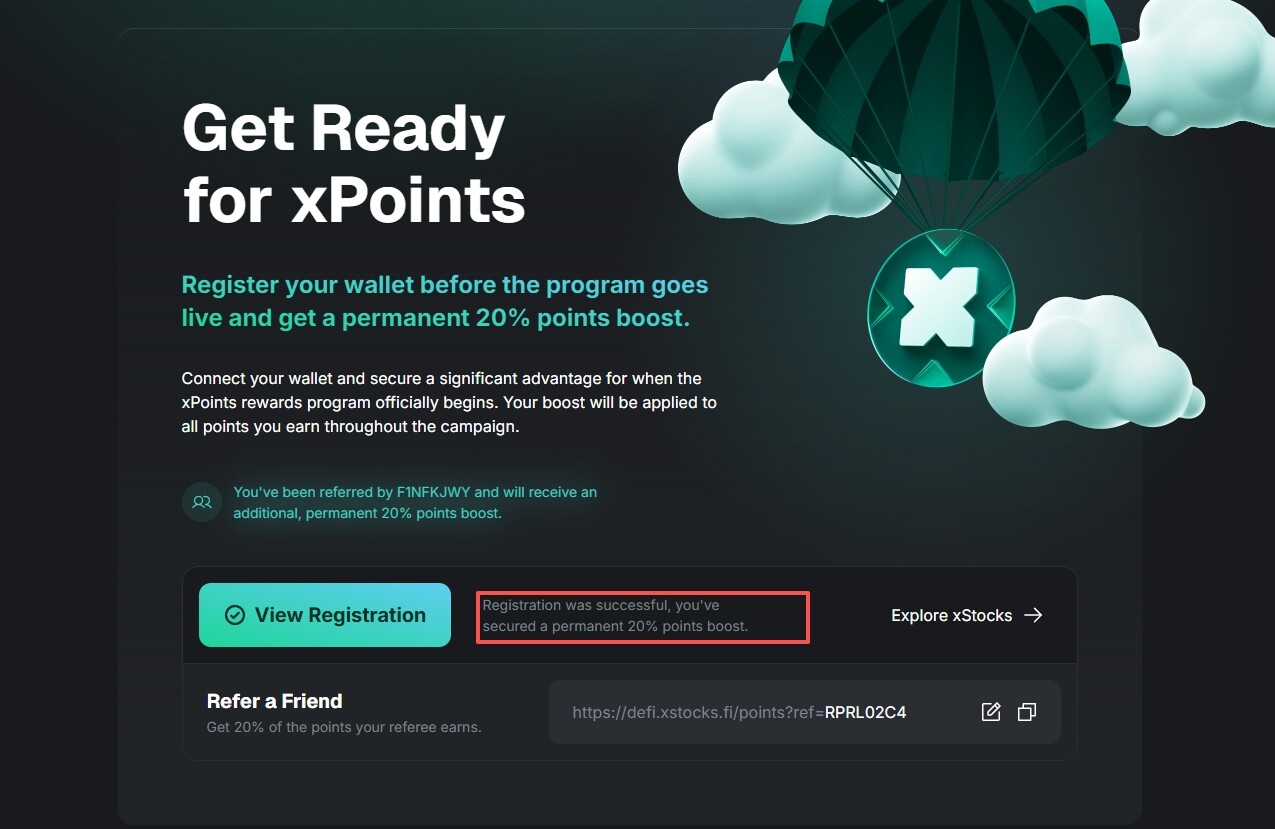本周,xStocks 在 X 平台发文宣布,上线 xPoints 积分计划,目前用户可以连接钱包,锁定 20% 早鸟加成。