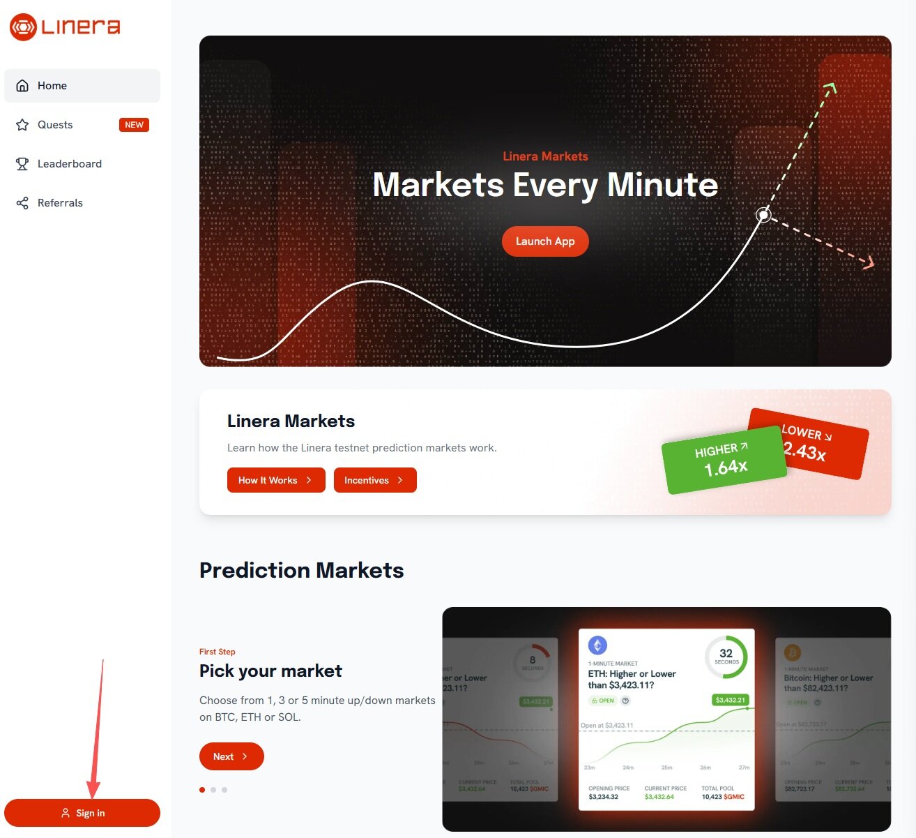 STEP 1. 进入官网(链接:https://portal.linera.net/),点击“Sign in ”完成账号登录,进入第二季活动主页。