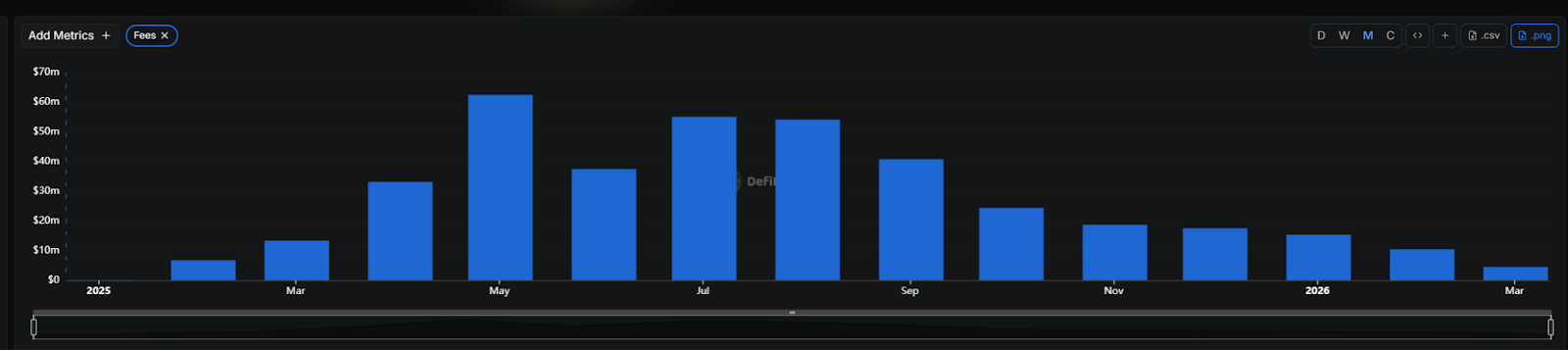 不过,这种增长主要源于1月份的BSC链上MEME交易量激增,当月产生全链收入达到1634万美元,到2月这个数字降为518万美元,3月截至目前约为377万美元。今年一季度总体水平和2025年同期接近。