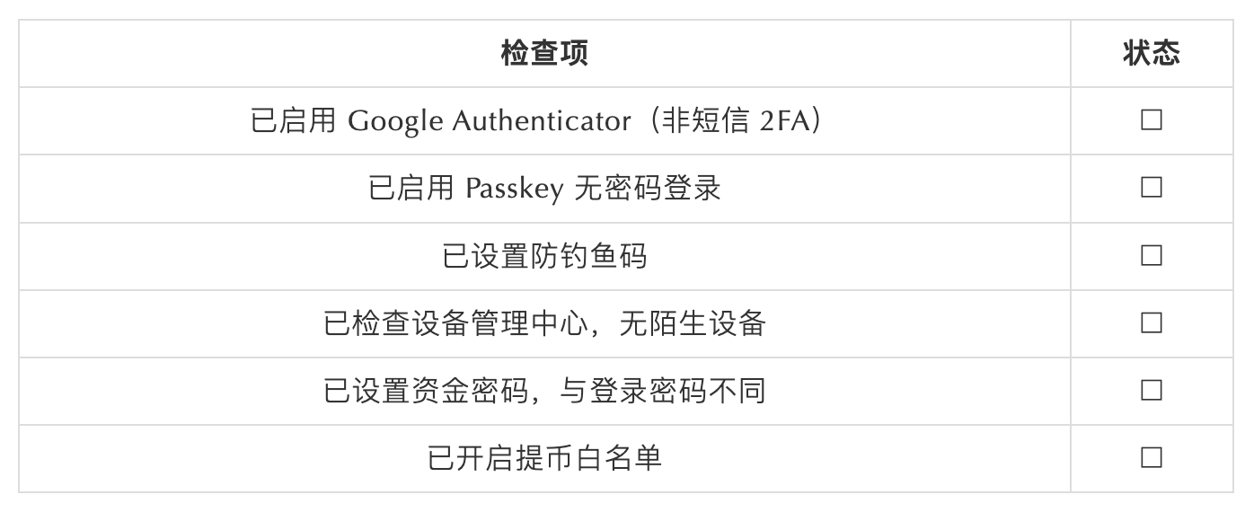 - 开启 Google Authenticator 作为主要 2FA,而非短信(SIM 卡可被劫持)
