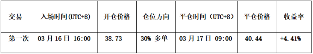 上周我们依据自主构建的价差交易模型与动能量化模型发出的交易信号,并结合对上涨结构的预判,完成一次短线(多单)操作,成功盈利 4.41%,执行过程严格遵循预案。