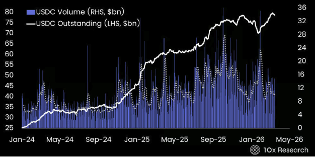 USDC 未偿余额与 USDC 交易量