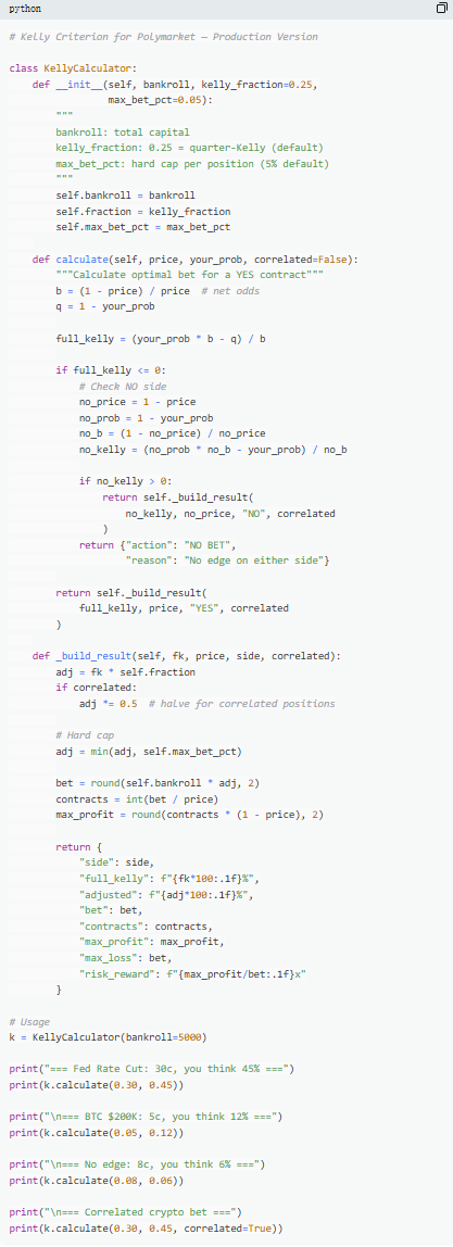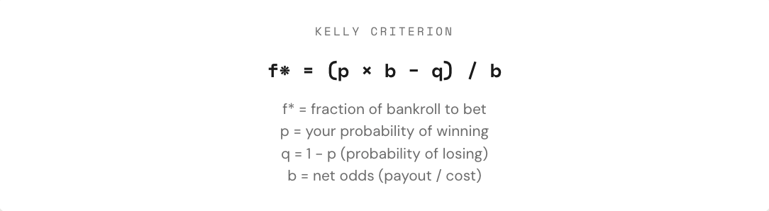 本质上,凯利公式提供的是一套纪律,先判断是否存在优势(即主观概率高于市场隐含概率),在此基础上,再决定投入多少资金。只有当“是否下注”和“下注多少”同时被数学约束时,交易才真正从博弈走向策略。