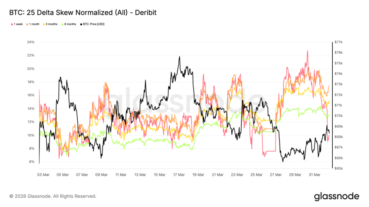 这种不同期限之间的分化很能说明问题。虽然近期价格企稳使短期对冲需求略有缓解,但中长期的保护性期权仍然有强劲的买盘。市场并未对大幅波动进行激进定价,但整个期限结构始终赋予下行风险更多权重。这指向一种持续性的防御性偏向,而非仅仅是对短期市场波动的临时反应。