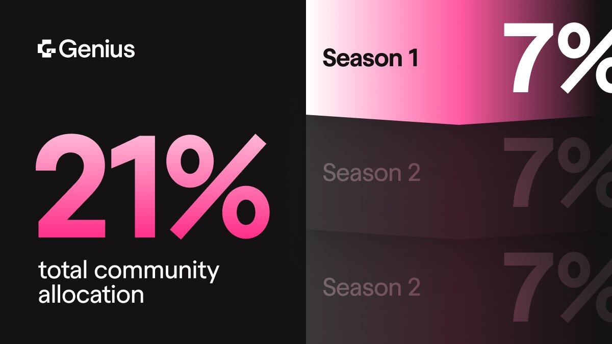 根据 Genius 此前所述,Season 1 将于 4 月 12 日前结束,更重要的是 4 月 12 日前将进行 TGE。因此,4 月 12 日前进行 TGE 时社区空投份额为代币总供应量的 7%,即空投 7000 万枚代币。