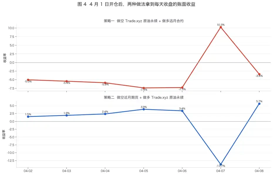 这笔交易几乎是策略 1 的对手盘,押注的是市场被过度套利。在 4 月 1 日之后,这种策略确实能取得收益。