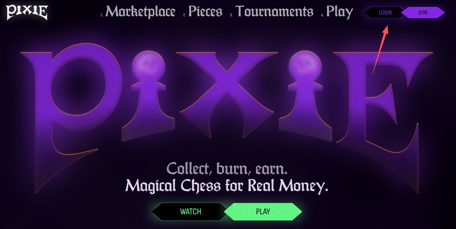 STEP 1. 进入官网(链接:https://www.pixiechess.xyz/),点击“LOGIN”后通过连接钱包进行账号登录。