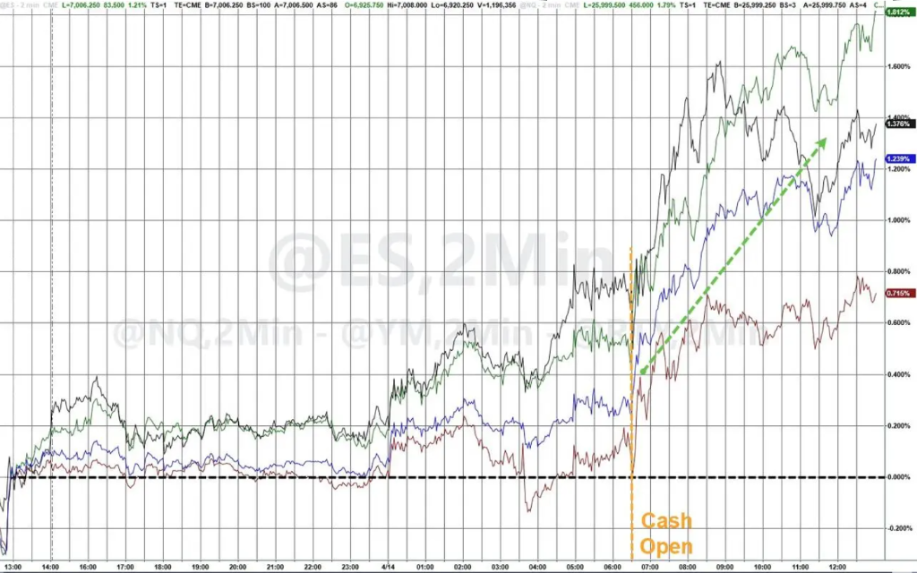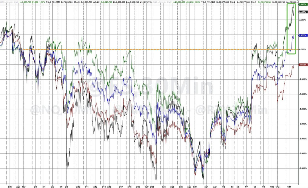 对于这轮美股强势反弹,一位资深股票交易员说道:”资金流向是单向的……CTA、客户,所有人都低配了风险敞口,现在都在追涨。”