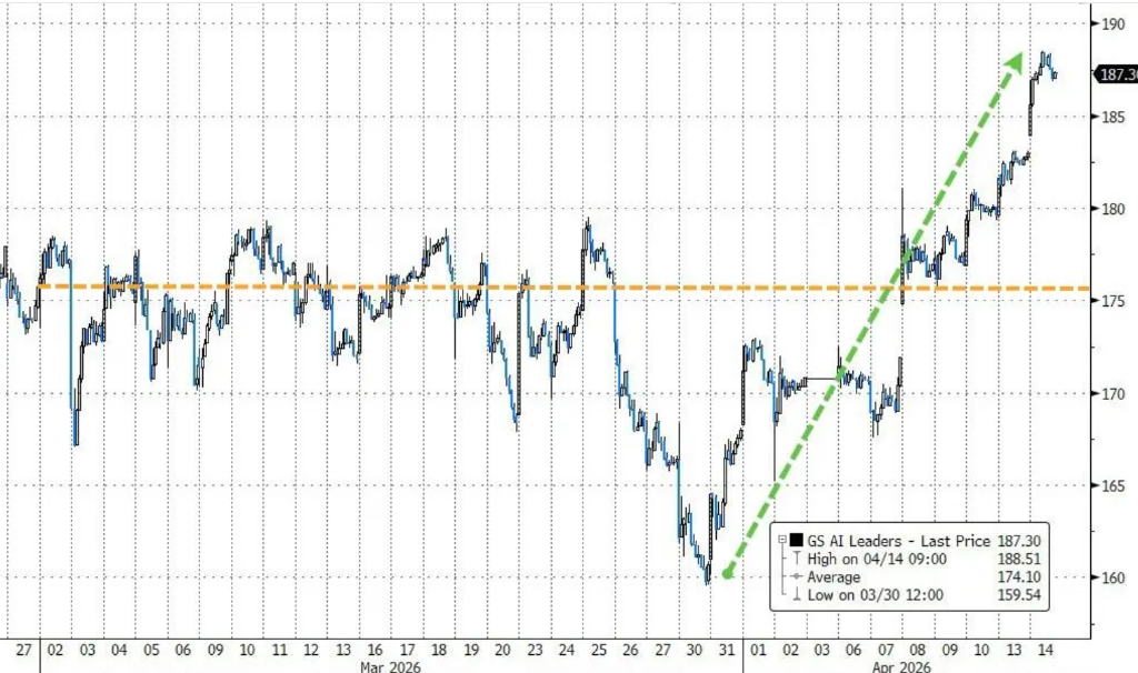 高盛交易台将”七巨头”(Mag 7)的持续强势归因于四点:地缘政治背景改善带动指数对冲头寸回补(Mag 7占标普500权重约33%)、Q1以来的资金腾挪交易趋于平息、市场提前布局财报季强劲预期,以及持续的股票回购计划支撑。