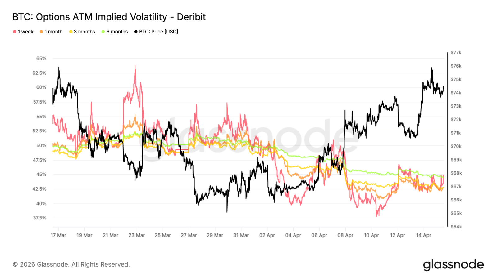 比特币价格持稳于约 74,000 美元,较 78,000 美元关键阻力位低约 5%。现货与交易型开放式指数基金需求有所改善,但获利了结行为、偏弱的市场广度以及谨慎的期权头寸布局,均表明当前涨势由资金流驱动且较为脆弱,缺乏坚定的市场信心。