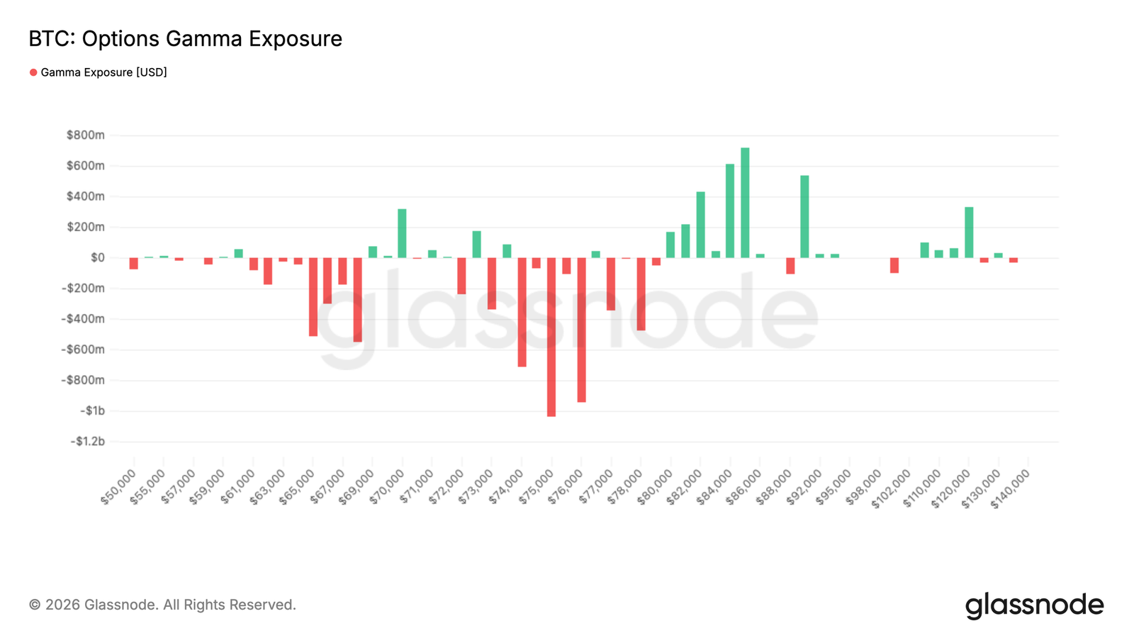 在该区域下方,缺乏强劲的正伽马支撑,意味着价格走势可能对资金流保持敏感。当前的市场结构反映出,在流动性及头寸布局仍相对清淡的环境下,机械性的套期保值活动可放大价格波动。