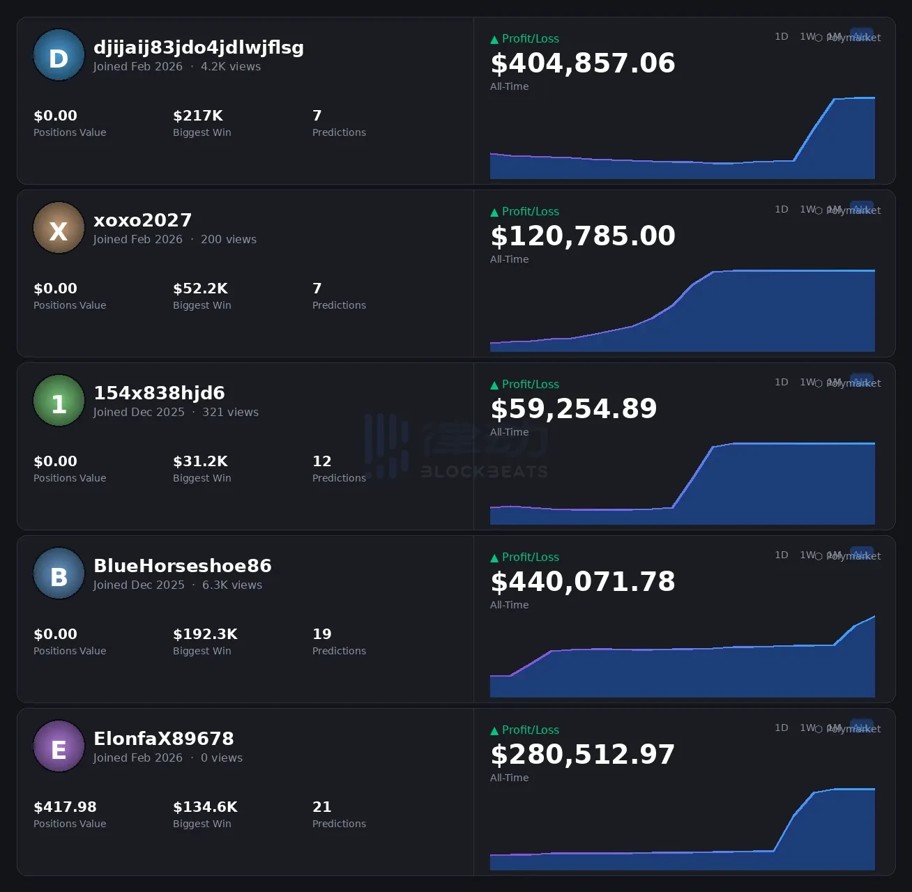 以色列的逮捕案已经坐实了一件事:确实有人带着军事内幕来到 Polymarket,也确实有人因此面临起诉。本文分析的这 5 个账户,则呈现了一个更系统化的版本——新账户、资金高度集中、入场时机异常精准、事件结算后全身而退。