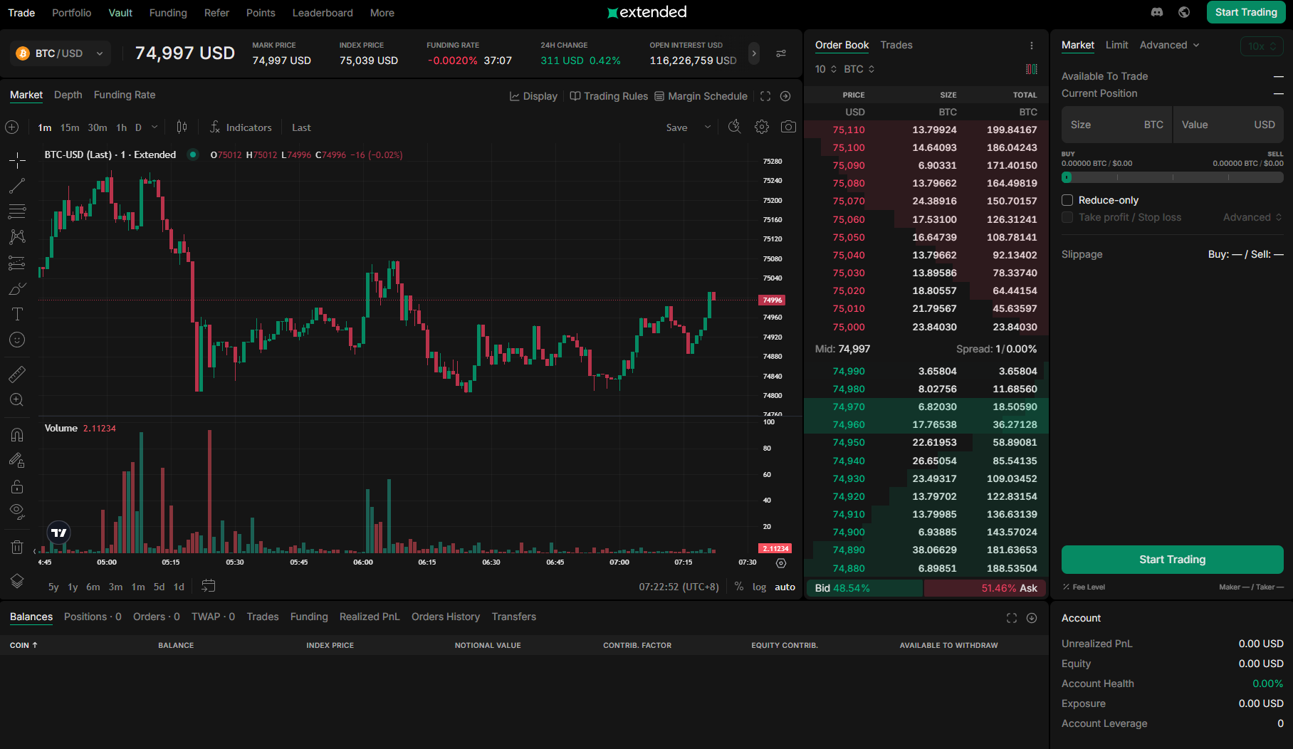 Extended 是 Starknet 网络上的 Perp DEX,由前 Revolut 团队打造,采用混合 CLOB 架构实现自托管安全与 CEX 级交易体验。项目已于 2025 年 8 月完成从 StarkEx 到 Starknet 主网的迁移,目前是 Starknet 生态 TVL 排名第一的应用,暂报 1.76 亿美元。