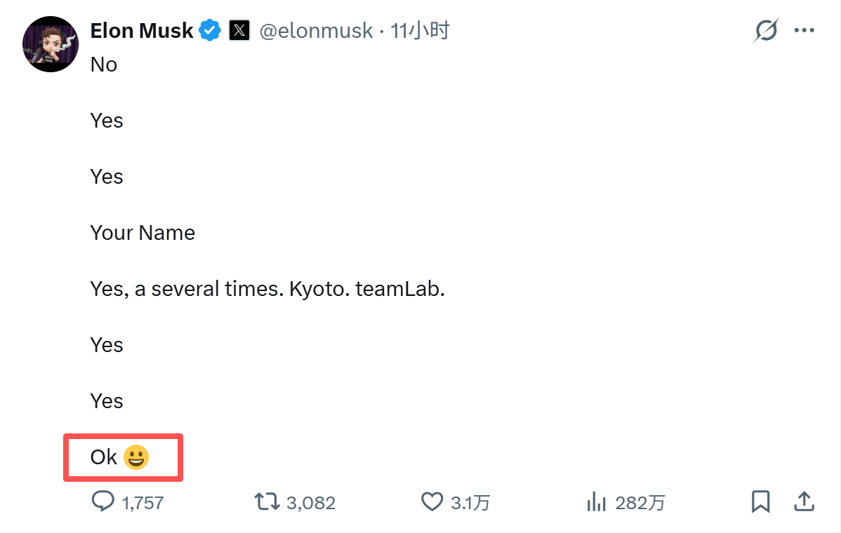 马斯克应承下,“马上就回”。这一“信号”也被链上市场迅速捕捉到。