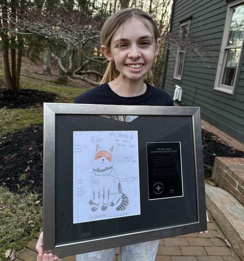 在 SpaceX 后续的 Polaris 项目中,她被邀请参与设计任务中的“零重力指示物”。这是一个会在飞船进入失重状态时漂浮起来的小玩偶,用于标志进入太空。Liv 在短时间内完成了设计——一只名为 Asteroid 的毛绒小柴,灵感来源于她对太空的想象以及对可爱形象的喜爱。