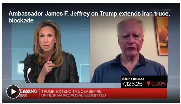 美国前副国家安全顾问、现任华盛顿研究所 Philip Solondz 杰出研究员 James F. Jeffrey 做客《Bloomberg Businessweek Daily》,就停火延长一事展开讨论,并与主持人 Carol Massar 和 Tim Stenovec 进行对话。