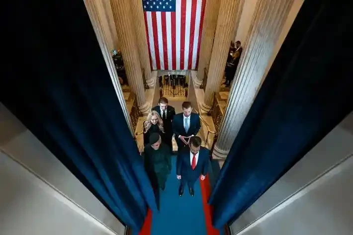重返白宫意味着生意机会的到来。特朗普总统的子女于 2025 年 1 月 20 日出席父亲第二次就职典礼。摄影:Kenny Holston-Pool/Getty Images