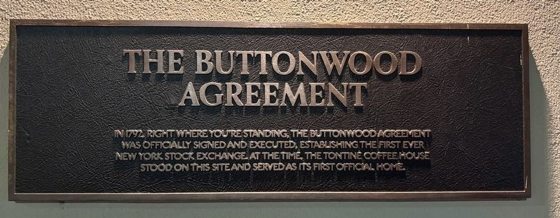 1792年5月17日,24个经纪人在华尔街一棵梧桐树下签署了《梧桐树协议》(Buttonwood Agreement),约定互相交易股票。这是纽约证券交易所(NYSE)的前身。